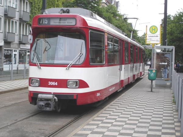 Fahrzeugtyp / Nummer: GT8S / TW-3064 Linie/Beschilderung: 715 / Eller, Vennhauser Allee Werbung: ohne Aufnahme: Düsseldorf, (H) Luisenstraße, © T. Rack, 08.05.2005 |