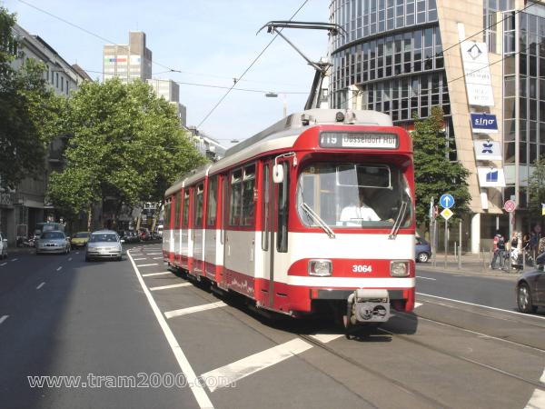 Fahrzeugtyp / Nummer: GT8S / TW-3064 Linie/Beschilderung: 719 / Düsseldorf Hbf. Werbung: ohne Aufnahme: Düsseldorf, Stresemannplatz, © T. Rack, 22.06.2005 |