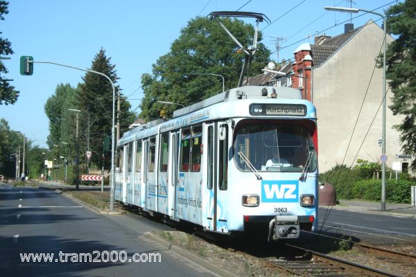 Fahrzeugtyp / Nummer: GT8S / TW-3063 Linie/Beschilderung: 706 / Kirchplatz Werbung: WESTDEUTSCHE ZEITUNG Aufnahme: Düsseldorf, Rather Broich, © T. Rack, 09.09.2006 |