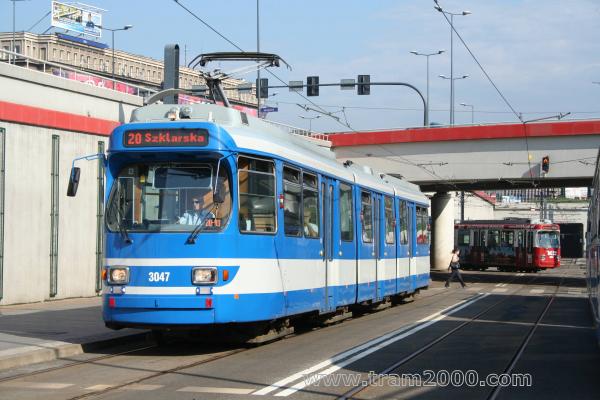 Fahrzeugtyp / Nummer: GT8S / TW-3047 Linie/Beschilderung: 20 / Szklarska Werbung: ohne Aufnahme: Krakau, (H) Rondo Mogilskie, © T. Rack, 16.08.2010 |