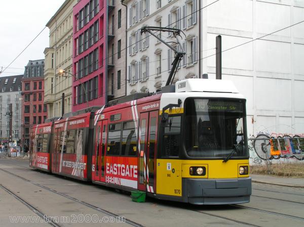 Fahrzeugtyp / Nummer: GT6N-ER / TW-1070 Linie/Beschilderung: M5 / Hohenschönhausen, Zingster Straße Werbung: EASTGATE EINKAUFSZENTRUM (II) Aufnahme: Berlin, (EH) Hackescher Markt, © T. Kliem, 13.03.2011 |
