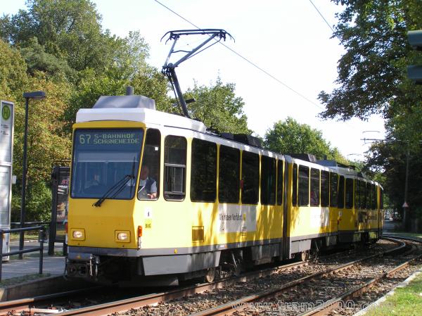 Fahrzeugtyp / Nummer: KT4Dt-M / TW-7012 + KT4Dt-M / TW-7049 Linie/Beschilderung: 67 / S-Bahnhof Schöneweide Werbung: BVG Eigenwerbung - Ich halte nur für Sie Aufnahme: Berlin, (H) Pablo-Neruda-Straße, © T. Kliem, 09.09.2009 |