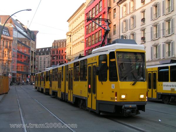 Fahrzeugtyp / Nummer: KT4Dt-M / TW-7072 + KT4Dt-M / TW-7088 Linie/Beschilderung: M5 / Hohenschönhausen, Zingster Straße Werbung: ohne Aufnahme: Berlin, (EH) Hackescher Markt, © T. Kliem, 23.09.2009 |