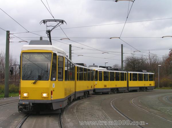 Fahrzeugtyp / Nummer: KT4Dt-M / TW-7052 + KT4Dt-M / TW-7083 Linie/Beschilderung: M5 / S Hackescher Markt Werbung: ohne Aufnahme: Berlin, (EH) Hohenschönhausen Zingster Straße, © T. Kliem, 11.11.2010 |