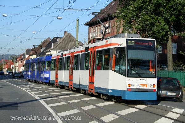 Fahrzeugtyp / Nummer: M8D / TW-594 + M8D / TW-595 Linie/Beschilderung: 3 / Babenhausen Süd Werbung: ohne Aufnahme: Bielefeld, Oldentruper Straße, © T. Rack, 09.10.2010 |