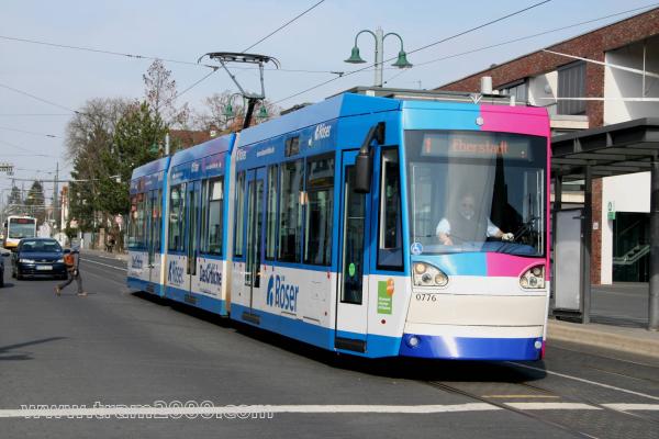 Fahrzeugtyp / Nummer: NGT8 (ST14) / TW-0776 Linie/Beschilderung: 1 / Eberstadt Werbung: RÖSER - DAS TELEFONBUCH / DAS ÖRTLICHE Aufnahme: Darmstadt, (H) Wartehalle, © T. Rack, 17.03.2010 |