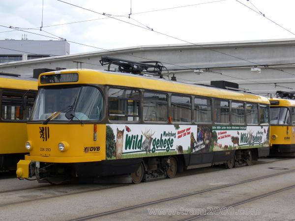 Fahrzeugtyp / Nummer: T4D-MT / TW-224-293 Linie/Beschilderung: - / - Werbung: Wildgehege Moritzburg Aufnahme: Dresden, Betriebshof Trachenberge, © A. Tenberge, 07.12.2008 |