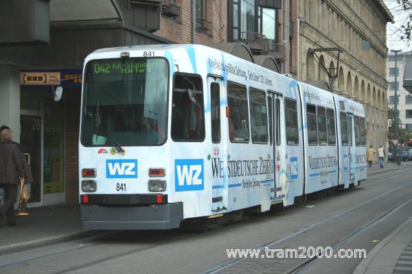 Fahrzeugtyp / Nummer: M8C / TW-841 Linie/Beschilderung: 042 / KR-Stahldorf, TEW Tor 3 Werbung: WESTDEUTSCHE ZEITUNG Aufnahme: Krefeld, Hauptbahnhof, © T. Rack, 10.11.2006 |