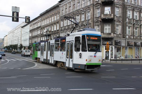Fahrzeugtyp / Nummer: KT4Dt / TW-101 Linie/Beschilderung: 9 / Potulicka Werbung: ohne Aufnahme: Szczecin [Stettin], Boleslawa Krzywoustego, © T. Kliem, 22.09.2011 |