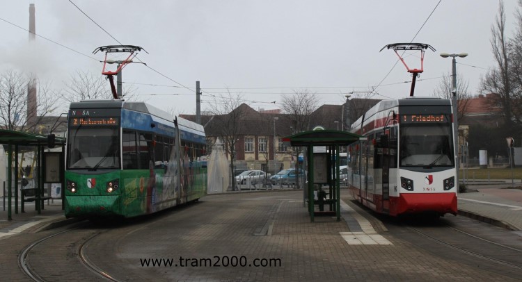 2 Straßenbahnlinien, 9 Triebwagen, zzgl. Arbeitswagen und Historische Fahrzeuge in einem Betriebshof